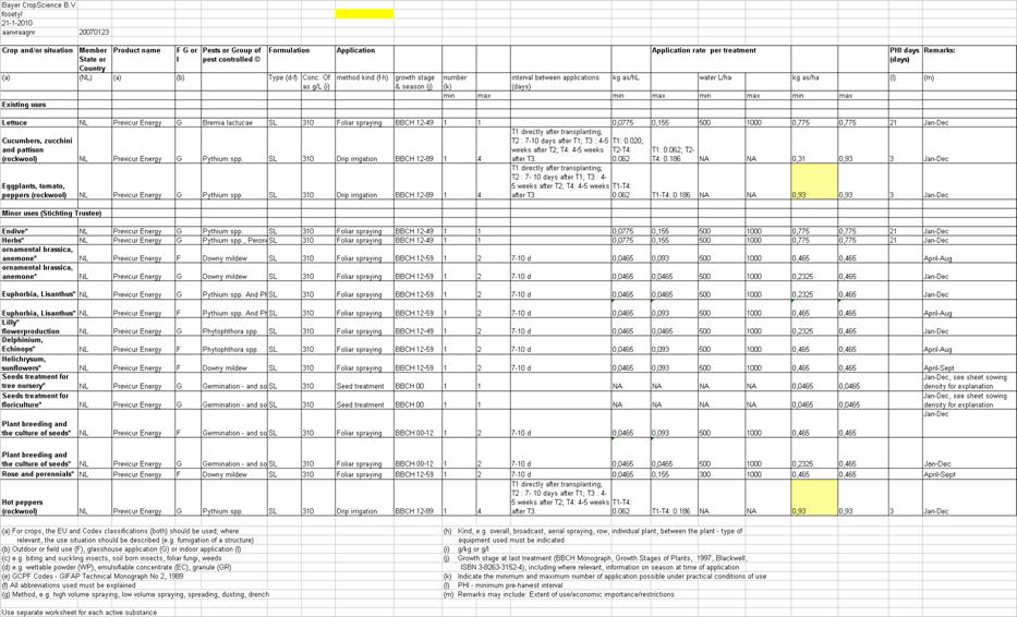 1. Het gebruiksgebied van het middel Previcur Energy wordt met ingang van datum dezes uitgebreid met de toepassing in de bedekte